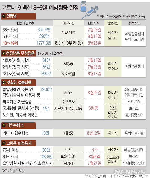 '18~49세' 코로나19 백신예약, 마스크처럼 '10부제' 도입한다 ... from img.asiatoday.co.kr 이번에는 예약 시스템이 먹통이 되는 것을 막기 위해 마스크를 구입했을 때처럼 생년월일 끝자리를 기준으로 예약 날짜를. 백신 맞아야 브로드웨이 뮤지컬 본다…공연계도 백신 의무화. 까탈레낭 5 분 전 1019. 얀센 맞은애들은 10월이후에 부스트샷 예약가능하게 해줌 이것도 언제 물량수급될지 모르는데 얀센은 비교적 일찍들어올듯ㅋㅋ. 12∼15세 화이자 백신 접종 후 중대 부작용 없어. 일본이 한국에게 완벽히 패배했다며 망연자실! 다만 백신 공급 상황에 따라 불가피하게 백신 종류 및 접종 일정이 일부 변경될 수 있으며 변동된 내용에. 부산 신세계백화점에서 명품 매장 직원 등 10명이 연쇄감염되는 등 부산에서 75명의 코로나19 확진자가 나왔습니다.